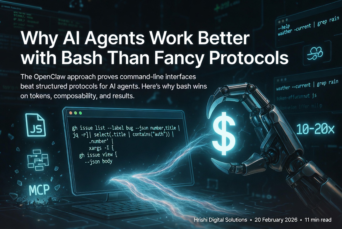Thinking about adding AI agent capabilities to your development workflow or enterprise systems? Hrishi Digital Solutions works with businesses across Australia to design and implement smart automation and AI integration that fits your actual technical context. Whether you are evaluating CLI-first agents, MCP tooling, or hybrid approaches, we can help you avoid the common pitfalls and build something that holds up in production. Contact us for a free 30-minute consultation.